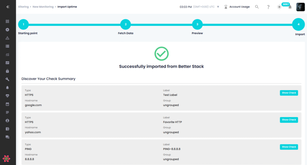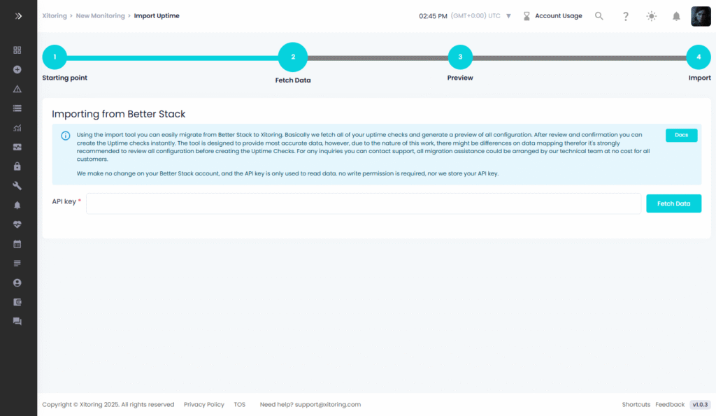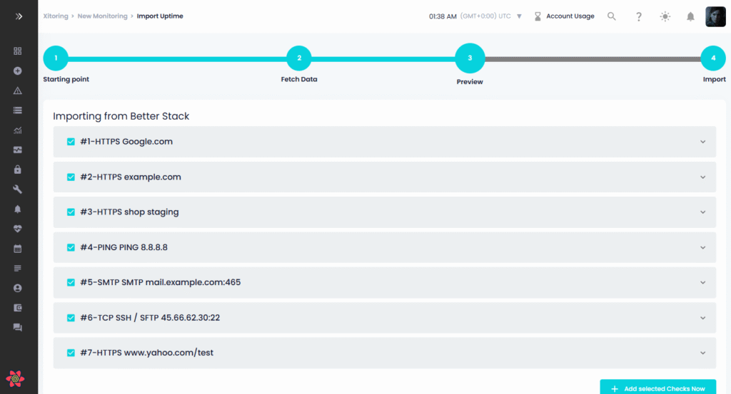 Stop re-creating your monitoring setup from scratch. Xitoring’s powerful auto-migration feature automates the entire process, so you can leave BetterStack behind and get your new monitoring solution running in just a few clicks. It’s the simplest way to get more for less.