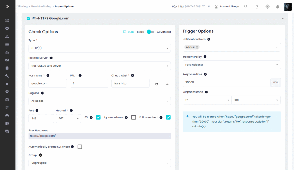 Provide your API key and Xitoring will automatically import all your configuration to save your time