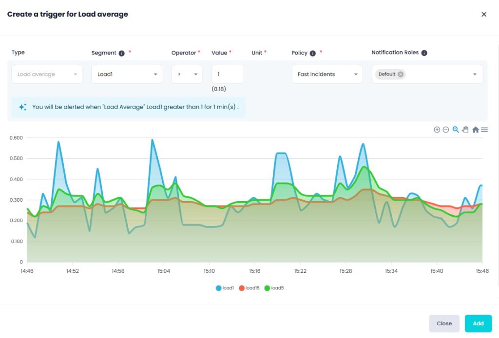 Setzen Sie Erkenntnisse in Maßnahmen um, indem Sie Auslöser direkt aus Ihren Diagrammen erstellen. Mit nur wenigen Klicks können Sie Leistungstrends analysieren, Bedingungen definieren und Warnmeldungen einrichten, um Problemen zuvorzukommen. Xitoring macht es einfach, Metriken in proaktive Überwachung umzuwandeln.