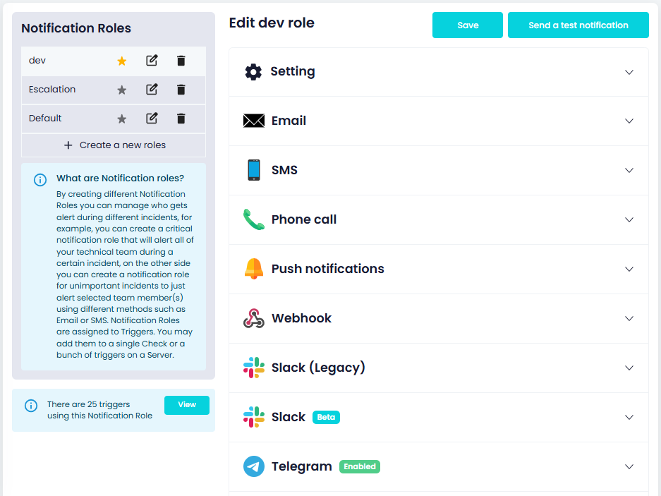 Notifique simultáneamente a varios miembros del equipo con un único rol de notificación, ideal para equipos distribuidos.